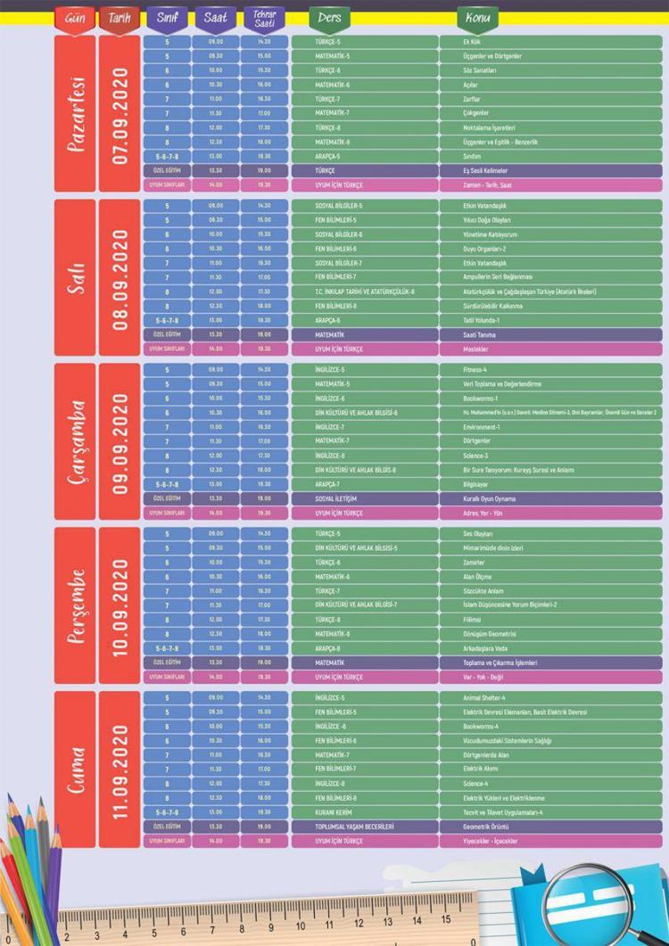 Trt Eba Tv Yayin Akisi Haftalik Ders Programlari Ilkokul Ortaokul Lise