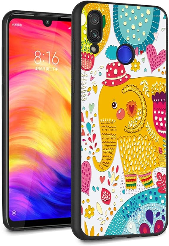 Amazon Com Eouine Xiaomi Redmi Note 7 Case Phone Case 3d Relief Silicone Black Embossed With Floral Flowers Pattern Design Slim Shockproof Back Cover Skin For Xiaomi Redmi Note 7 Smartphone Elephant